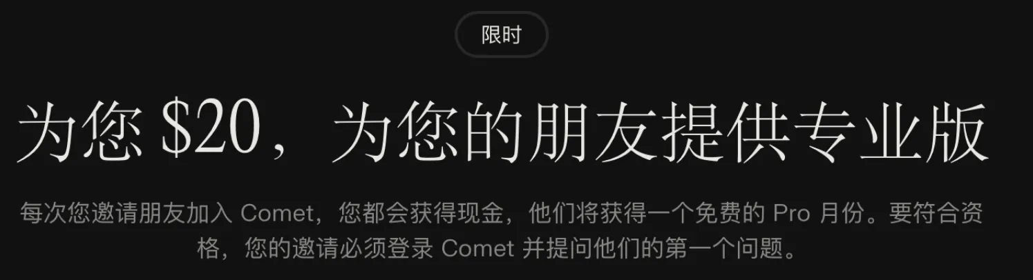 这个浏览器是Perplexity AI 的产品,最近刚刚开放这款浏览器,之前只能在网页端和手机端APP上使用这个AI工具的功能,我是今年年初的时候订购这款AI 的Pro计划,这一年AI工具百花齐放 我的AI编程工具(IDE)这一年都晋级3次了,但是这个深度搜索工具在我这的地位一直都未被撼动过,从生活但交易,各种需要进行网络搜索场景都会被用到.