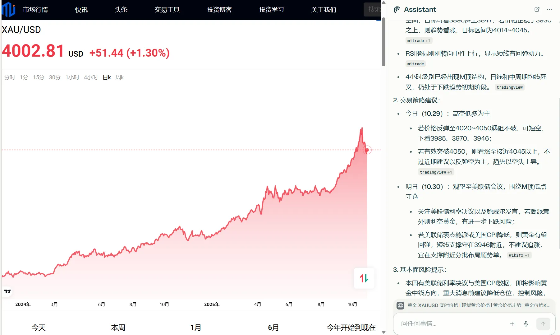 提示词:请进行深度思考,给出今天和明天最佳的XAUUSD交易建议