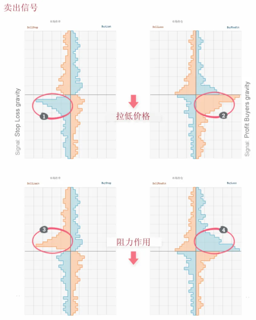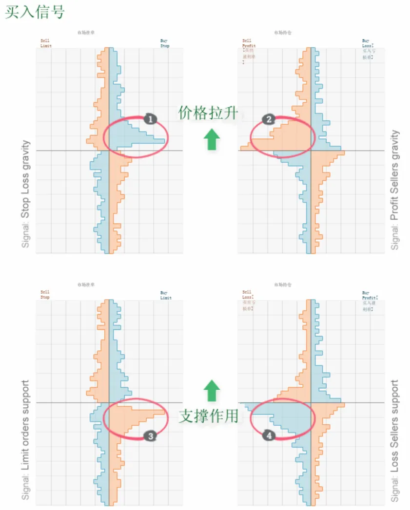 Buy Profit[买方盈利单]聚集,价格出现大量的Buy盈利单聚集的位置,会转换成卖方的”燃料”起到拉低价格作用;