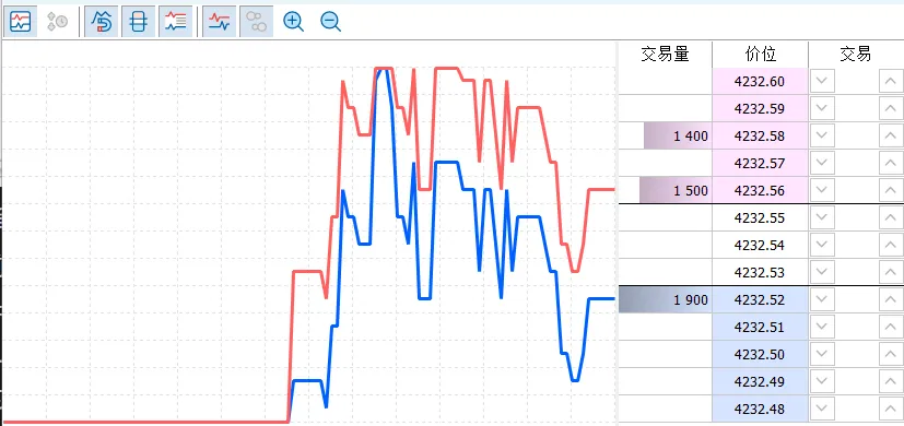 请注意,在高级期货/股票交易所订单簿中存在“空白”价格。这更适合于估计工具的流动性,而直方图则使感知成交量更加容易。