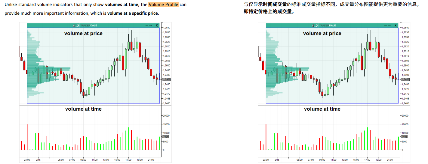 在图表上,把某一段时间内的成交量,按不同价格“堆”成一条条横向的柱子,